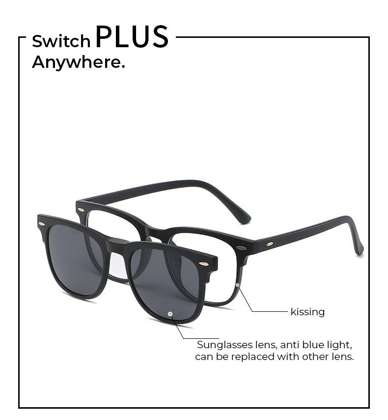 6 in 1 Unisex Photochromic Anti Blue Magnetic Clip Glasses All in One Sunglasses